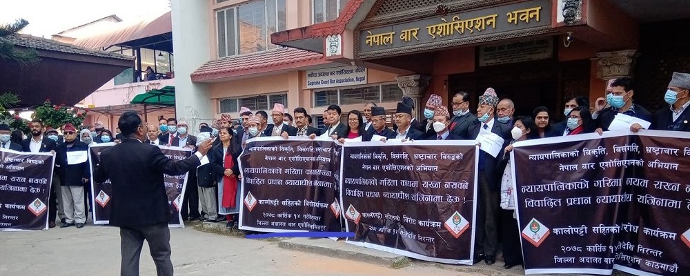 कात्तिक ८ गते देखि प्रधानन्यायाधीश राणाको राजीनामा माग गर्दै सर्वोच्च अदालतका न्यायाधीश र कानुन व्यवसायीहरुले आन्दोलन थालेका हुन्।