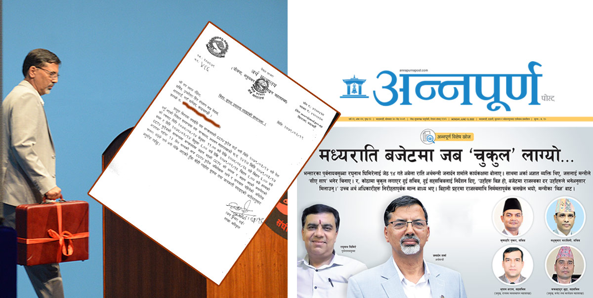 अर्थमन्त्री शर्माले पूर्वनासु रघुनाथ घिमिरे र व्यापारिक घरानाका एक ‘फाइनान्स डाइरेक्टर’लाई जेठ १४ गते मध्यराति मन्त्रालयमा प्रवेश गराएर बजेटमा राजस्व, कर र भन्सारका दर मिलाउन प्रयोग गरेका थिए । सीसीटीभी फुटेज उपभोक्ता हित संरक्षण मञ्चले माग गर्दा अर्थ मन्त्रालयले १३ दिनमै मेटिएको जवाफ दिएको थियो ।