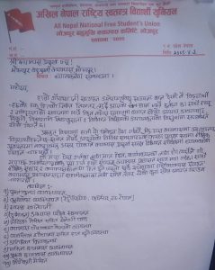 शैक्षिक गुणस्तरका पूर्वाधार बनाउन माग गर्दै भोजपुर बहुमुखी क्याम्पसलाई अनेरास्ववियुले बुझायो ध्यानाकर्षण पत्र