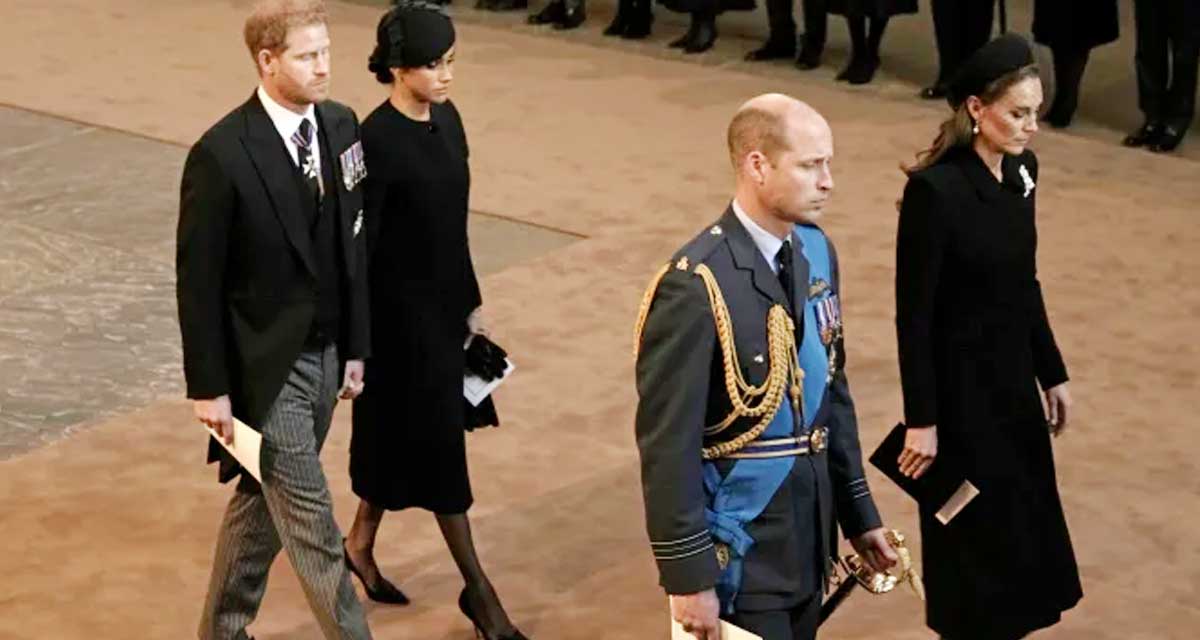 लन्डन। प्रिन्स ह्यारीले आज आफ्ना भाइ विलियम र राजा चाल्र्सलाई बकिंघम प्यालेसबाट वेस्टमिनिस्टर हलसम्म दिवंगत रानी एलिजाबेथ द्वितीयको कफिन लैजाने शव यात्रामा सामेल भएका छन्। शव यात्रामा राजा चाल्र्स र राजकुमार विलियमले औपचारिक सैन्य पोशाक लगाएका थिए भने ह्यारी ‘शोक पोसाक’ मा देखा परे।