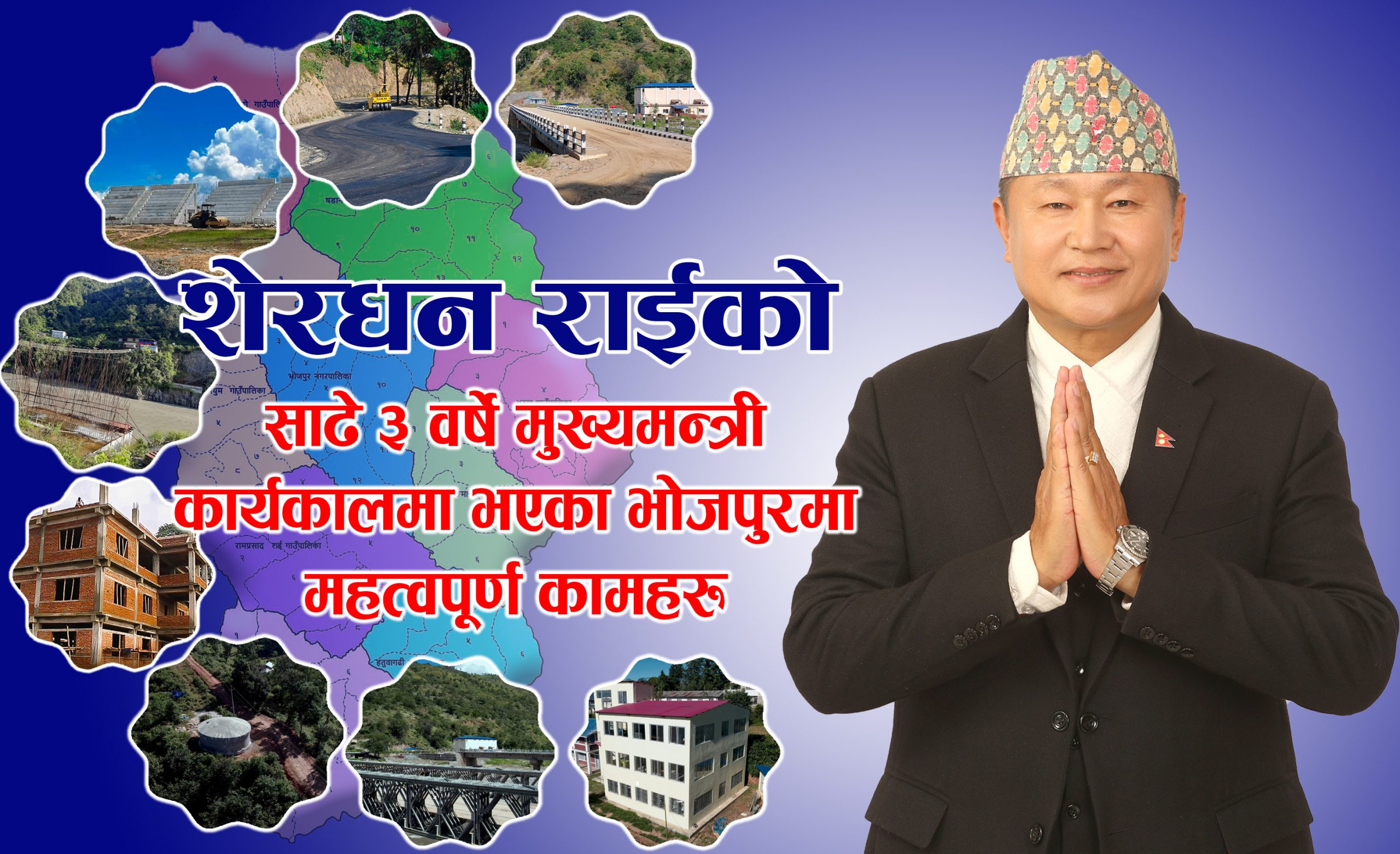 भोजपुर । समग्र भोजपुरको विकाससंगै जोडिने नाम हो, प्रदेश १ का संस्थापक मुख्यमन्त्री शेरधन राई । उनी मुख्यमन्त्री मात्रै नभएर उनी बोलीको पक्का र भोजपुरे जनताले रुचाएका प्रभावशाली नेताभित्र पर्छन् । उनको ३ वर्षे मुख्यमन्त्री कार्यकालमा उनले भोजपुरको धेरै बहुप्रतिष्ठित योजनाहरु सफल पारे । केहि निर्माण अवस्था र केहि प्रक्रियामा छन् ।
