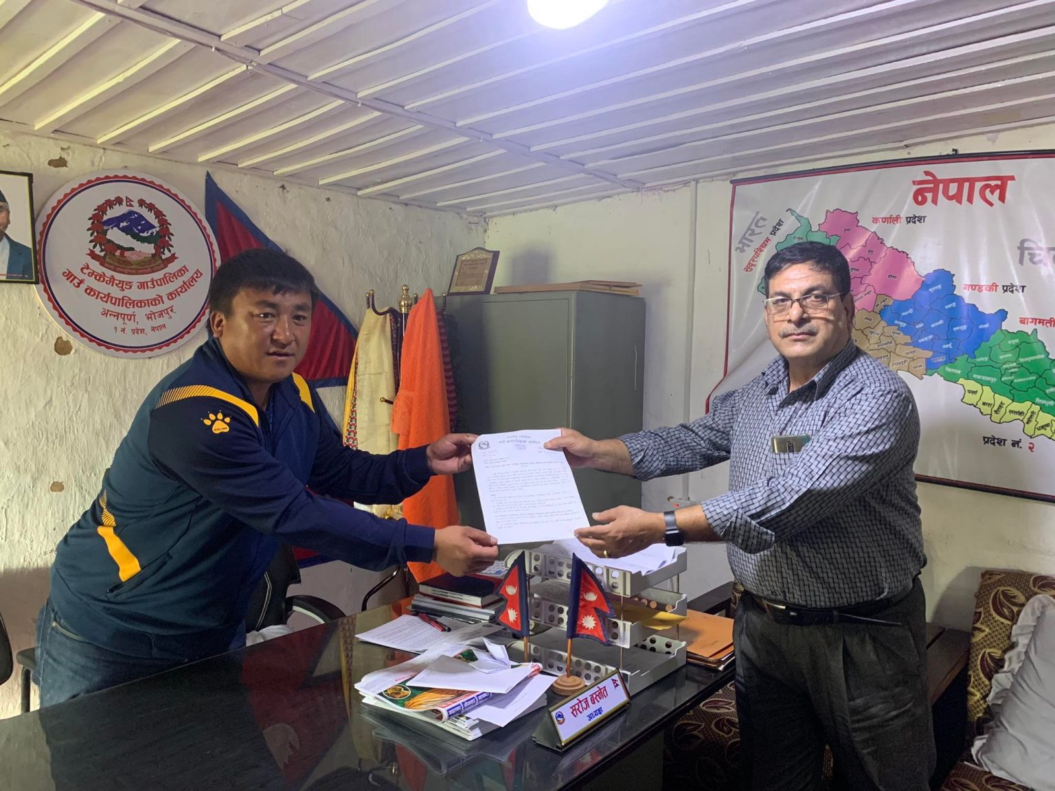 उक्त माग पत्र प्रमुख जिल्ला अधिकारी बासुप्रसाद कोईरालालाई हस्तान्तरण गरिएको गाउँपालिकाका अध्यक्ष सरोज बस्नेतले बताए । माग पत्रमा पालिकाका प्रत्येक घरधुरीलाई दुई हजारका दरले शेयर कित्ता दिनुपर्ने, ट्रान्समिसन टावर रहने ठाउँमा ७ रोपनी प्रभावित क्षेत्र कायम गरी उचित मुआब्जा उपलब्ध गराउनुपर्ने, ट्रान्समिसन टावरमुनी पर्ने घर तथा चौडा जग्गा प्रभावित ८० मिटर सम्म प्रभावित क्षेत्र कायम गरी उचित मुआब्जा उपलब्ध गराउनुपर्ने जस्ता माग उल्लेख छ ।