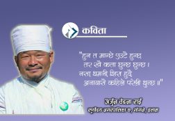 "हुन त मान्छे एउटै हुन्छ" हुन त मान्छे एउटै हुन्छ, तर खै कता छुन्छ छुन्छ । नसा, धमनी, शिरा हुँदै, अनायासै कहिले परेली धुन्छ ।   कोलाहल, भीड, व्यस्तताहरु समेटिएका अनि पोखिएका सपनाहरु । चर्कंदै जोडिएका, जोडिएर टुक्रिएका, अस्तव्यस्त हतारहरु । हतारभित्रका हतारहरुमा आफू पनि हता...